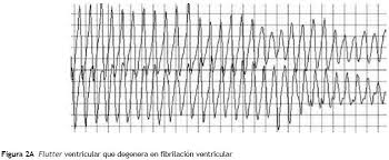 La fibrilación ventricular es una arritmia mortal en pocos segundos y que constituye uno de los mecanismos del paro cardiaco. Debido a la conducción rápida y totalmente asincrónica de los ventrículos, no permite un gasto cardiaco adecuado, por lo que en pocos segundos el paciente fallece si no se instaura un tratamiento eficaz. Electrocardiográficamente consiste en una serie de ondas de frecuencia y amplitud variable, no distinguiéndose ninguna imagen estable.
